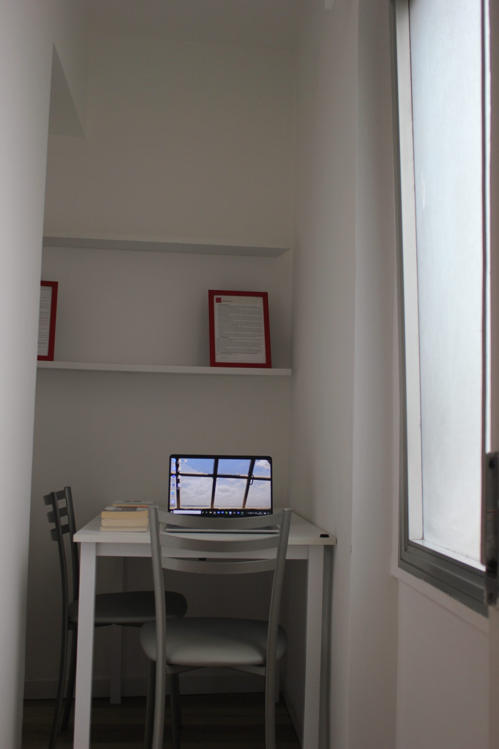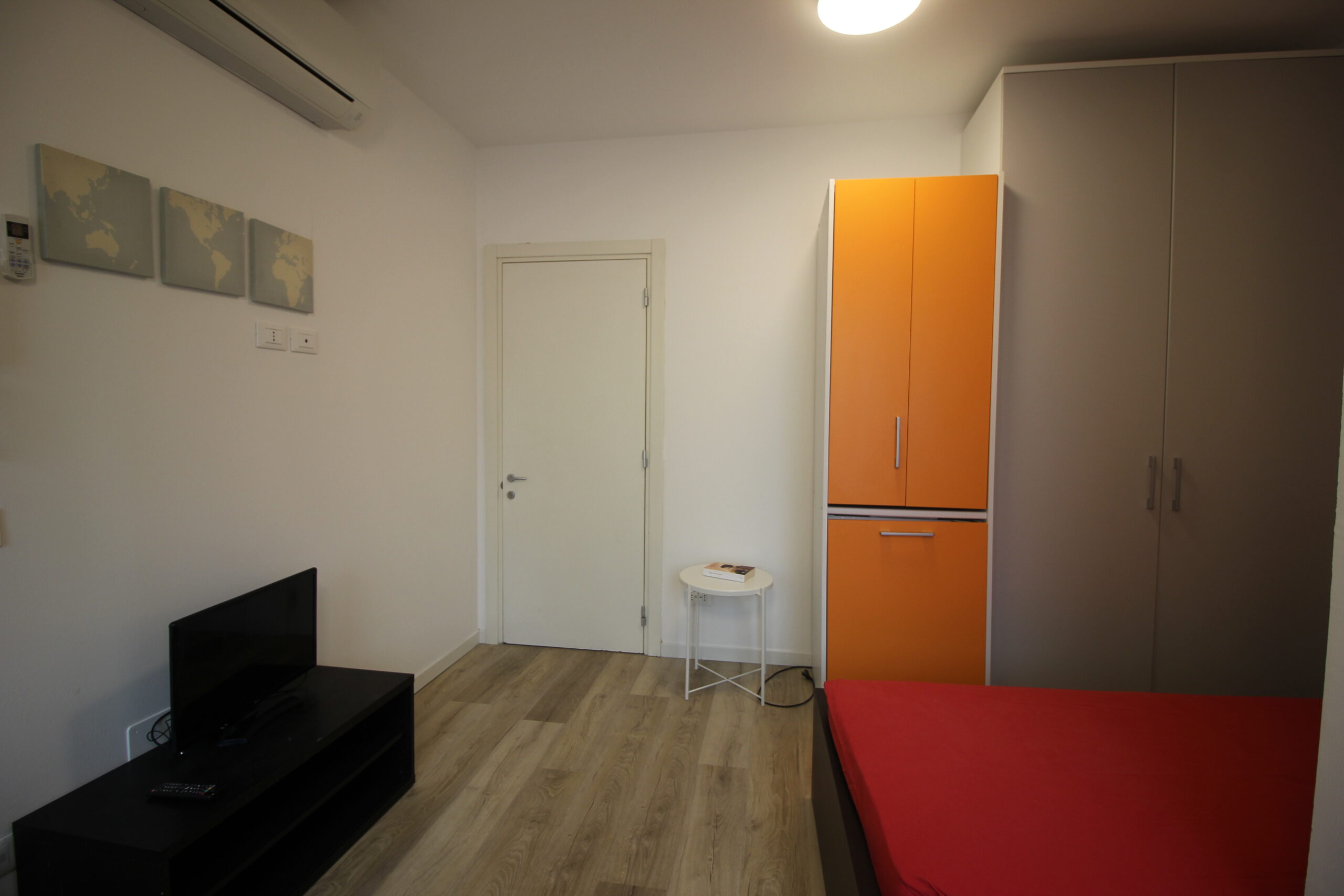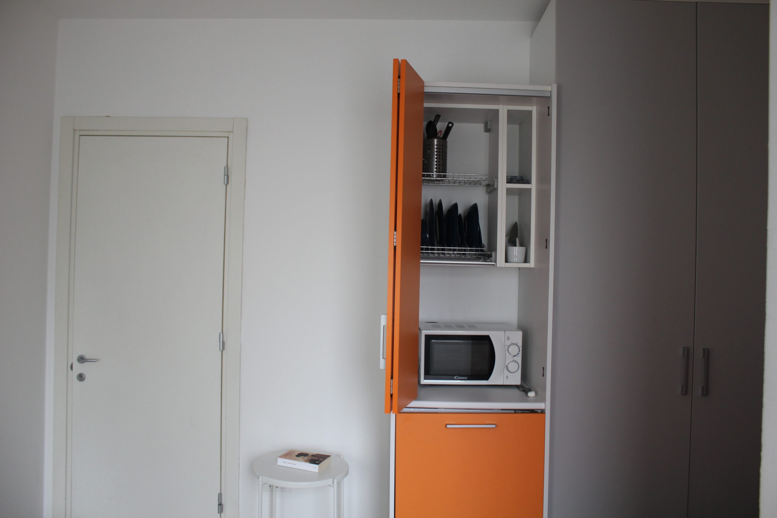 La stanza è completa di mobile cucina con microonde, mini-frigorifero, spazio soggiorno, letto singolo, bagno in comune con un’altra camera.