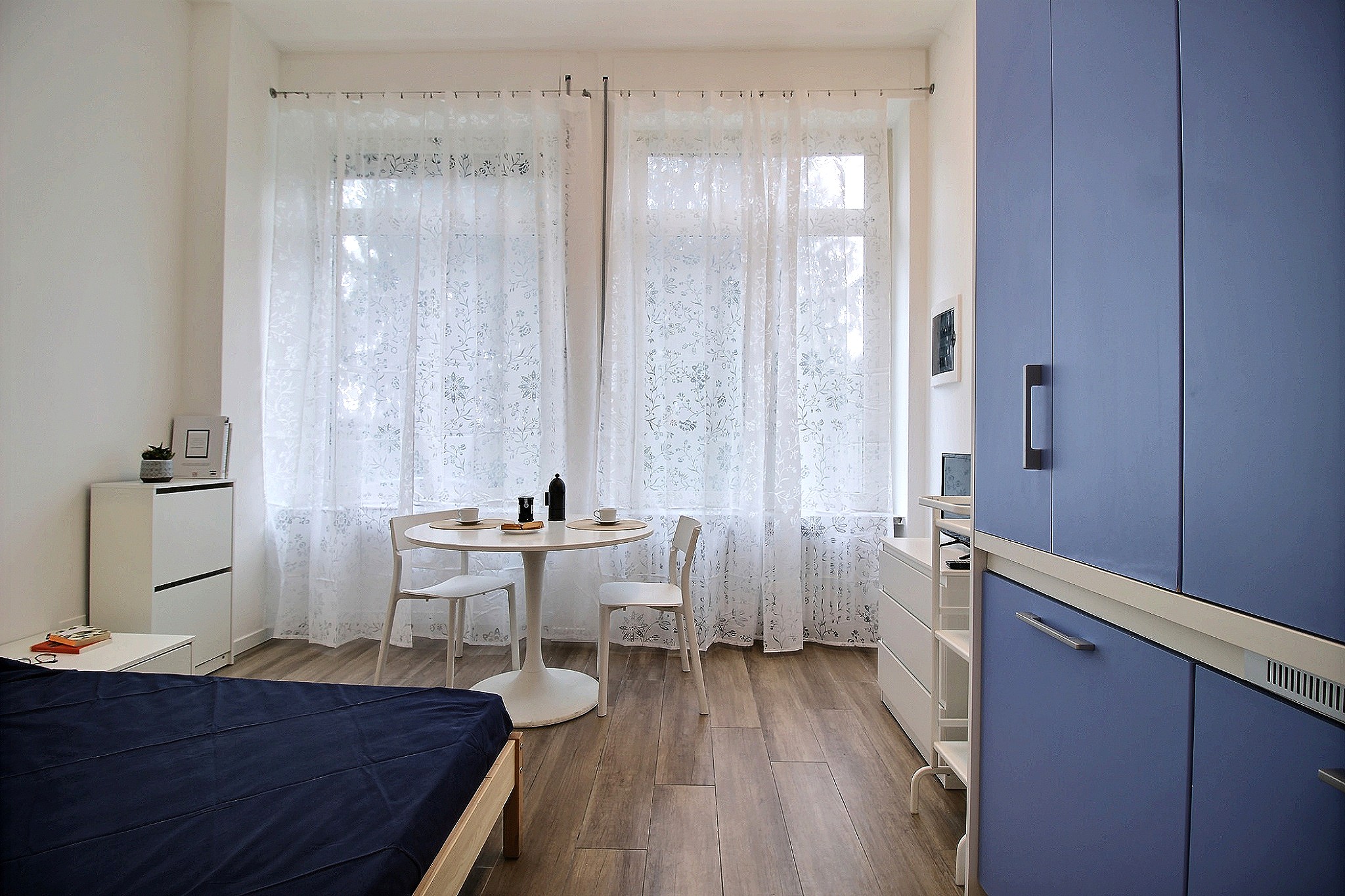 Camera attrezzata all’interno della Residenza Don Carlo San Martino in Largo Sereni 1, in posizione strategica tra il quartiere Città Studi e Forlanini e ottimamente collegata con il centro città dalla metropolitana linea blu a soli 350 metri (fermata Argonne).
